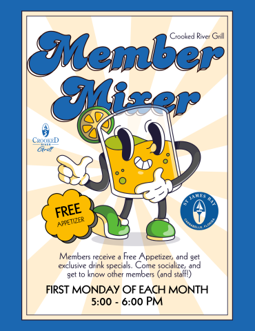 Join us for our monthly Member Mixer on the first Monday from 5:00–6:00 PM. Members enjoy exclusive drink specials and a complimentary appetizer. Come socialize, meet other members, and get to know our staff.
