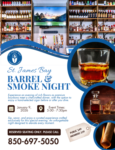 Kick off the year with a curated bourbon tasting paired with a chef-crafted supper. Enjoy smoky flavors, expert pairings, and a relaxing evening surrounded by fellow members and guests. Cigars will be available for those who wish to partake.