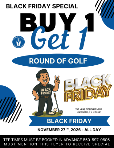 Kick off your Black Friday with fresh air and fairways! Enjoy our Buy 1, Get 1 Free Round of Golf all day long. Perfect for family in town, golf buddies, or anyone needing a break from the shopping madness.