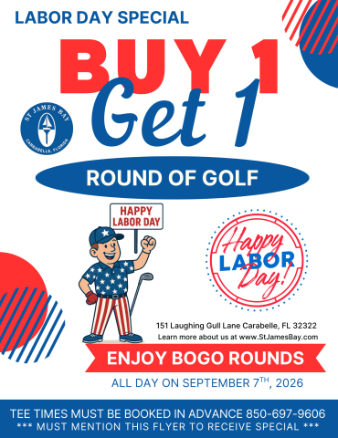 End summer on a high note with our Labor Day BOGO special! Enjoy a Buy 1, Get 1 Free Round of Golf all day long. Perfect for relaxing, celebrating, and enjoying a long weekend at St. James Bay.