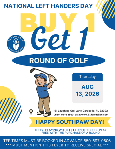 Happy Southpaw Day! Golfers playing with left-handed clubs receive a free round with the purchase of a round. Celebrate the lefties in your life with a fun day on the course.