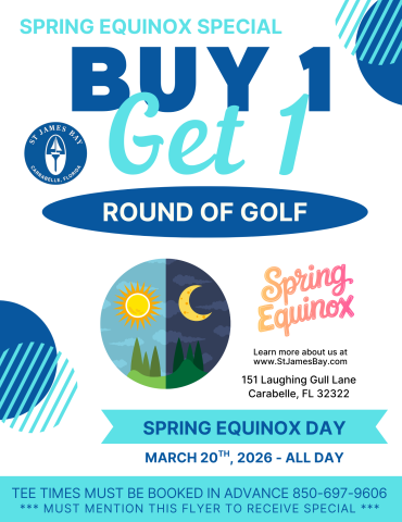 Celebrate the changing seasons with a Spring Equinox BOGO golf special. Enjoy perfect weather, longer daylight, and double the fun on the course. Book your tee time in advance and mention this flyer at check-in.