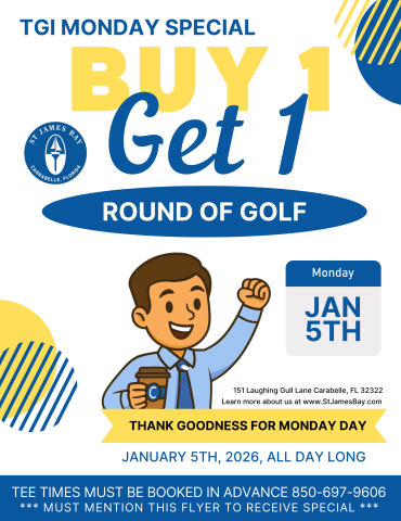 Mondays just got better! Kick off the week with a BOGO round of golf during National Thank Goodness It’s Monday Day. Perfect for locals, visitors, and anyone looking for a weekday escape. Reserve early and mention this flyer to redeem.