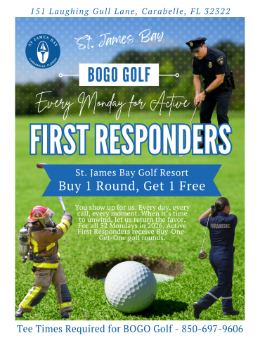 Every Monday in 2026, Active First Responders enjoy Buy One, Get One Free golf rounds as our way of saying thank you. Police, firefighters, EMTs, paramedics, and all frontline response personnel play BOGO all day long.