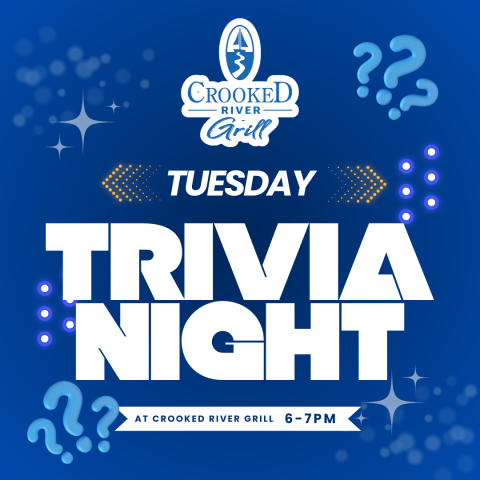 Put your knowledge to the test every Tuesday from 6–7 PM at Crooked River Grill! Bring your friends, enjoy great food and drinks, and compete for bragging rights in a fun, fast-paced hour of trivia. It’s the perfect mid-week hangout—see you there!